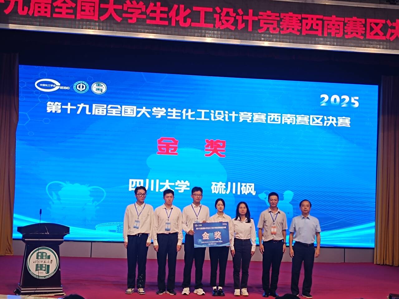 “硫川砜”团队一路过关斩将,荣获西南赛区冠军,并与四川轻化工大学、西南石油大学、重庆工商大学、重庆科技大学、西南大学、重庆大学、四川师范大学的竞赛团队携手入围全国总决赛。