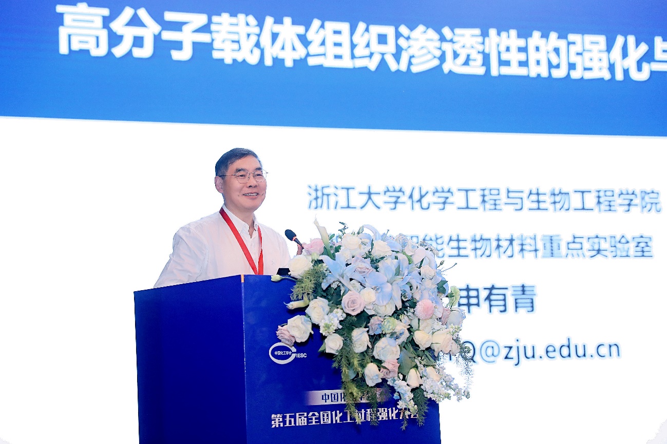 大会特邀报告环节聚焦化工领域的前沿创新趋势及产业化发展路径。会上,骆广生院士、聂红院士、杨超院士、申有青院士、曹宏斌院士分别作了题为《微化工与过程强化》《可持续航空燃料生产技术的研发与应用》《多相流反应器强化高端化工材料制造》《高分子载体组织渗透性的强化与临床转化》《工业过程高效减污降碳的思考与实践》的大会报告。此外,鲍晓军教授、巩金龙教授、华卫琦常务副总裁、金万勤教授、李春忠教授、陆小华教授、王靖岱教授、邢卫红研究员、张志炳教授等专家,也应邀做了大会报告。